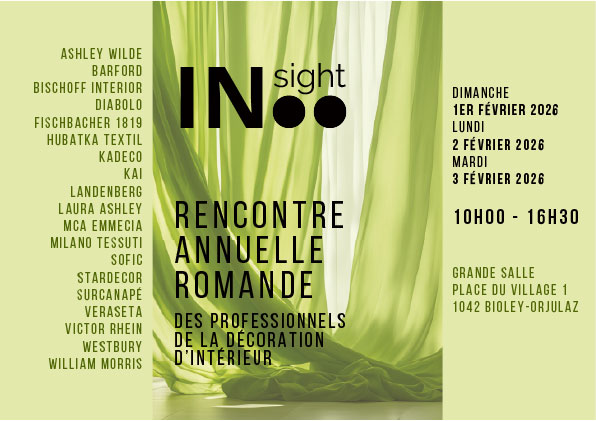 Besuchen Sie uns auf der INsight Switzerland, der Fachmesse für Innenarchitektur in der Romandie! Vom 01. bis 03. Februar 2026 präsentieren wir Ihnen unsere neuesten Kollektionen. Lassen Sie sich inspirieren und erleben Sie Designneuheiten hautnah.
